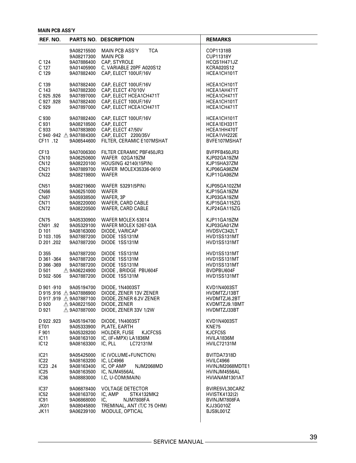 REF. NO. PARTS NO. DESCRIPTION REMARKS