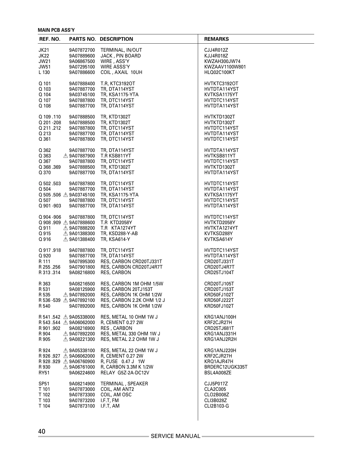 Q 101 9A07888400 T.R, KTC3192OT HVTKTC3192OT