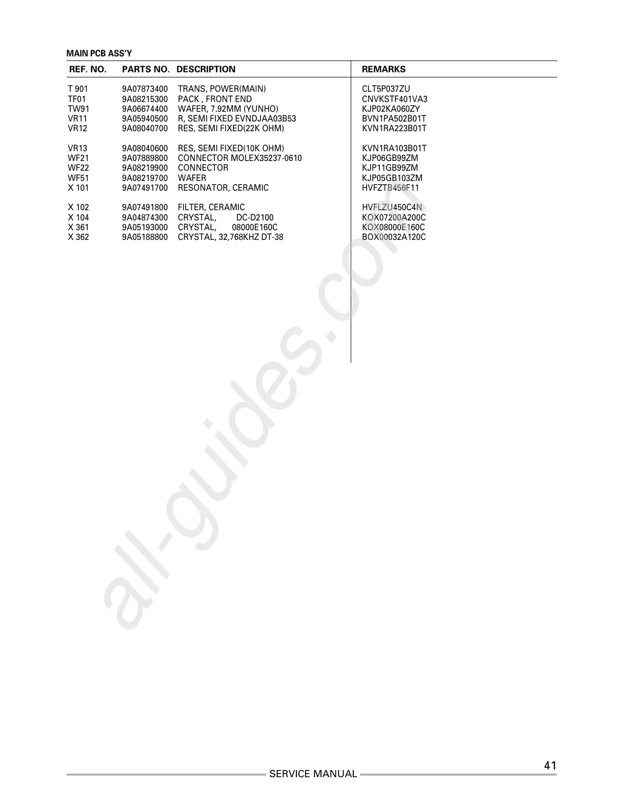 REF. NO. PARTS NO. DESCRIPTION REMARKS