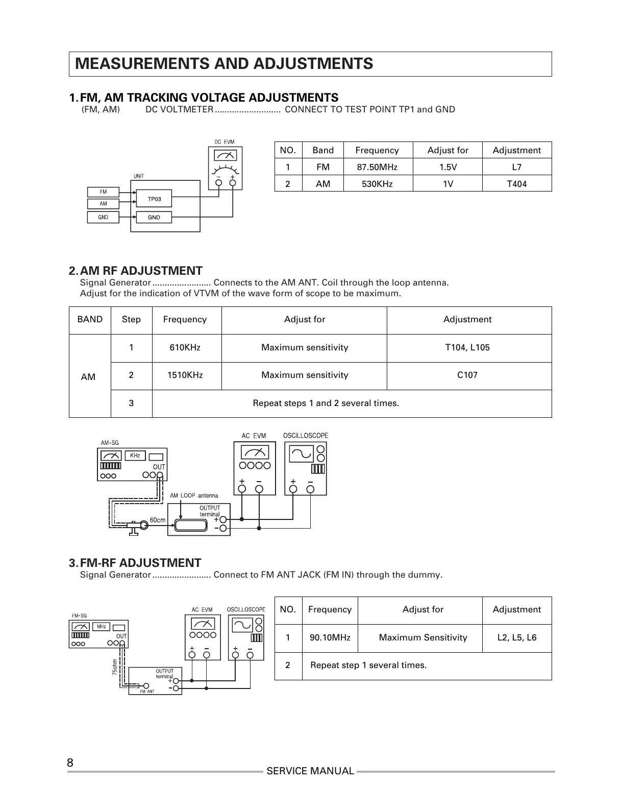 1. FM, AM TRACKING VOLTAGE ADJUSTMENTS