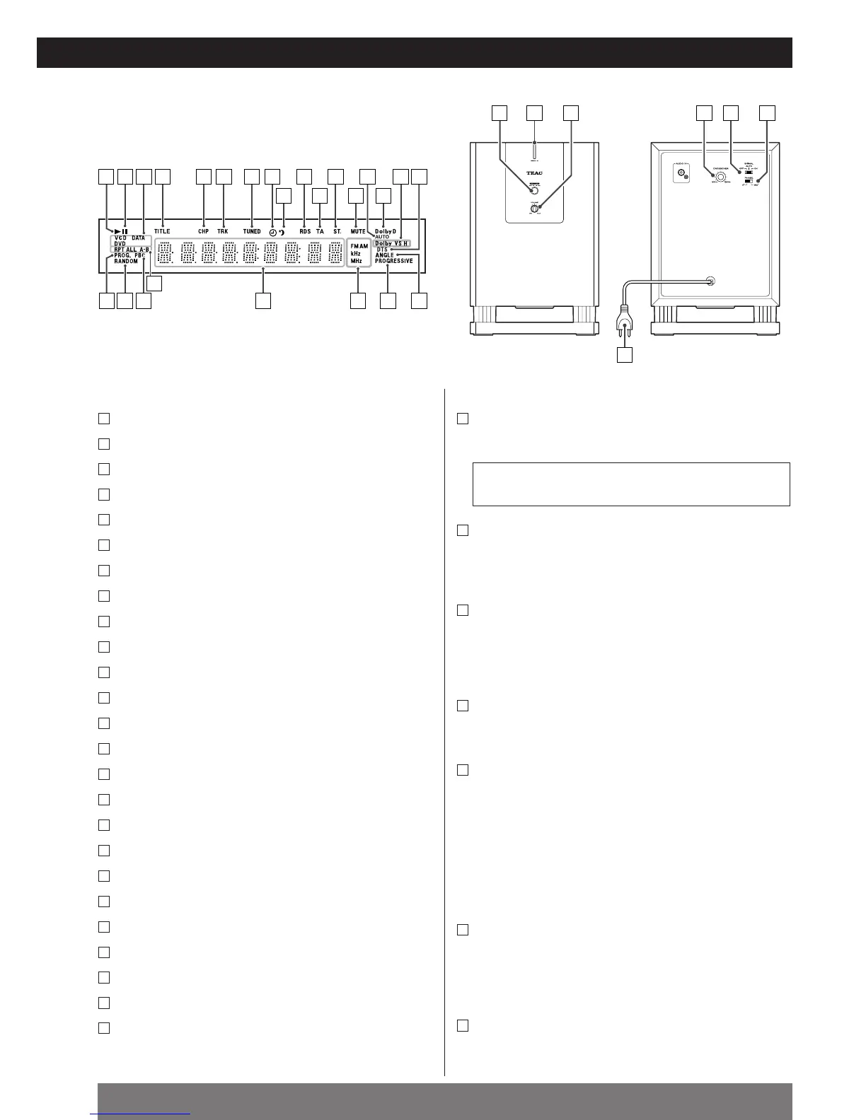 Press this switch to turn the unit on or off (standby).
