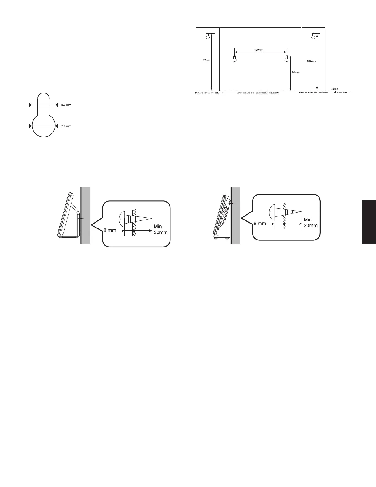 3. Appendere apparecchio e diffusori inserendo la parte sporgente delle viti nei fori praticati sul retro.
