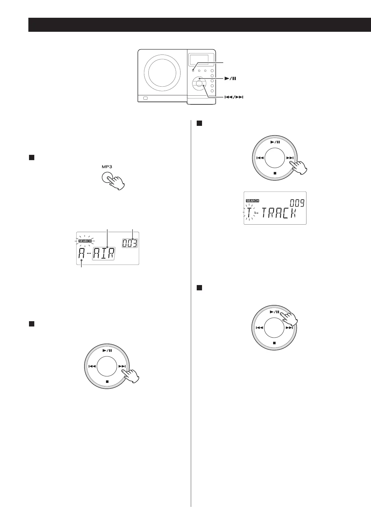 Appuyez sur la touche SKIP (. ou /) et maintenez-