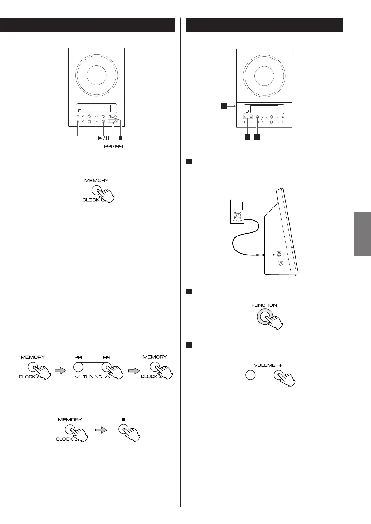 touches VOLUME du MC-DX30 et du lecteur audio.