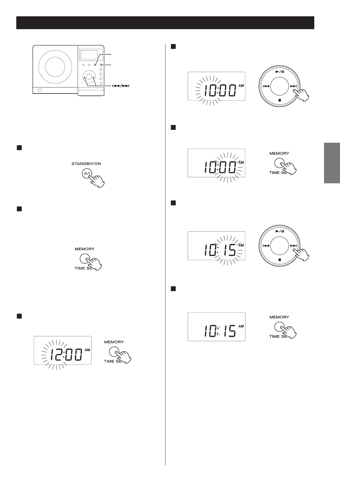 < If you leave the unit idle for 7 seconds, the time setting mode