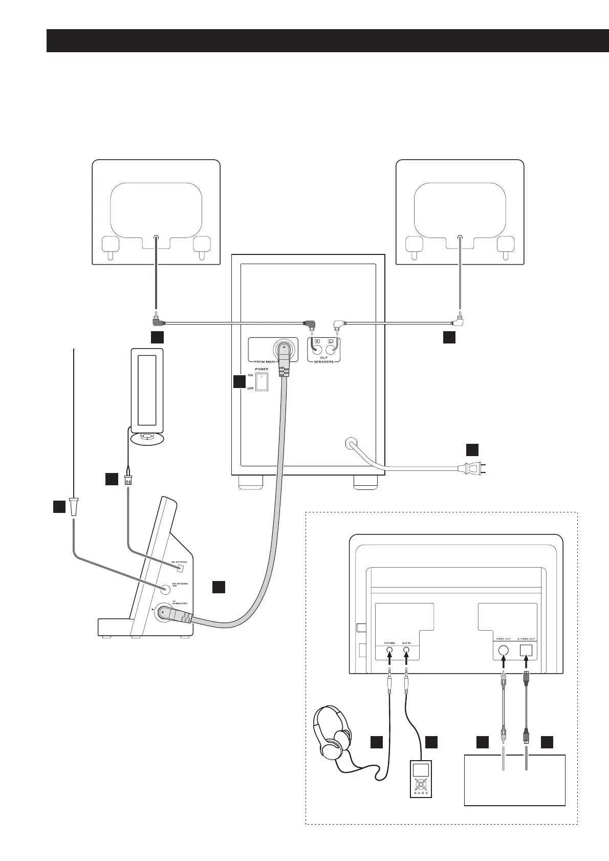 < Be sure to insert each plug securely. To prevent hum and noise, do not bundle the connection cords with the power cord.