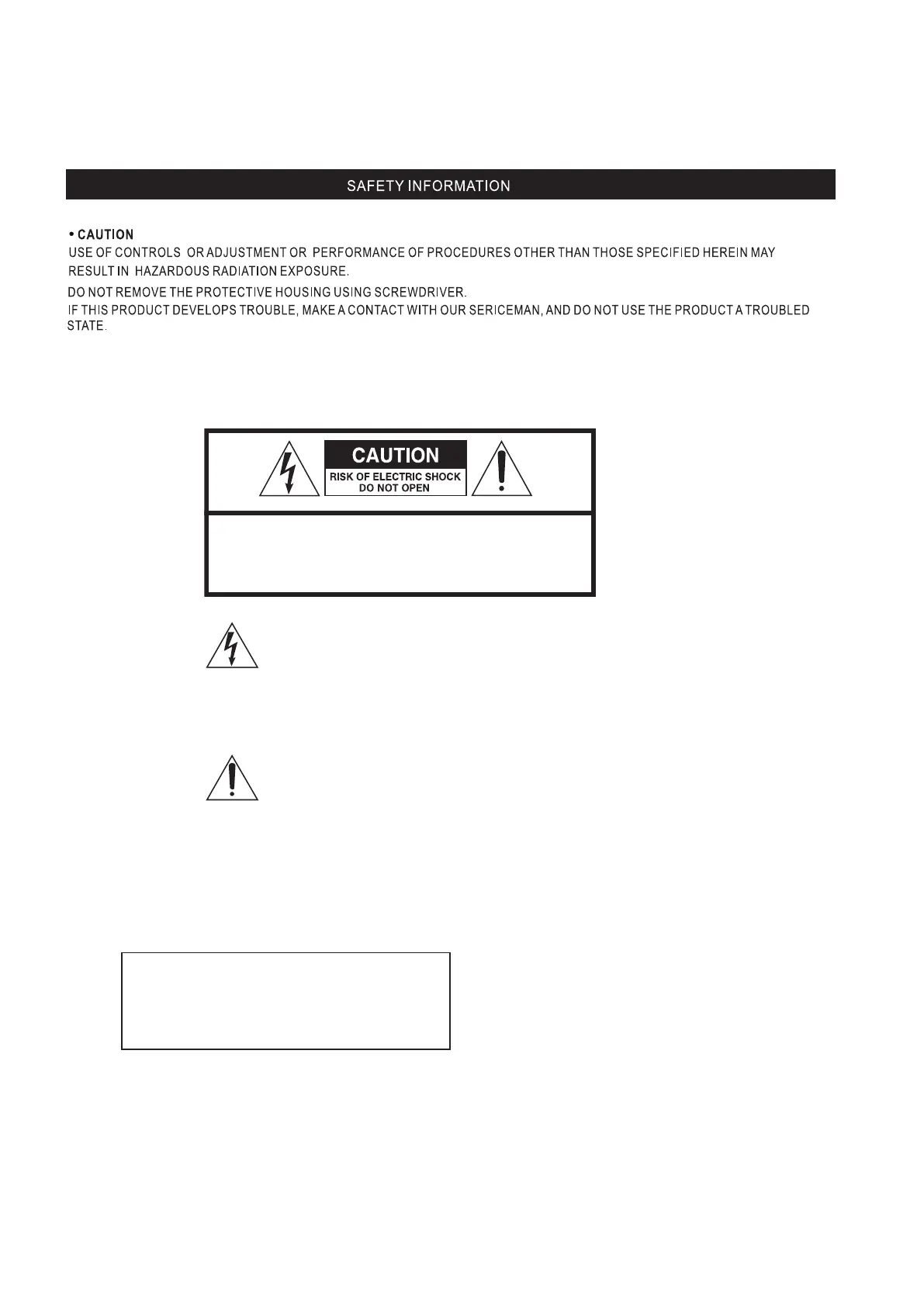 DO NOT REMOVE COVER (OR BACK). NO USER-