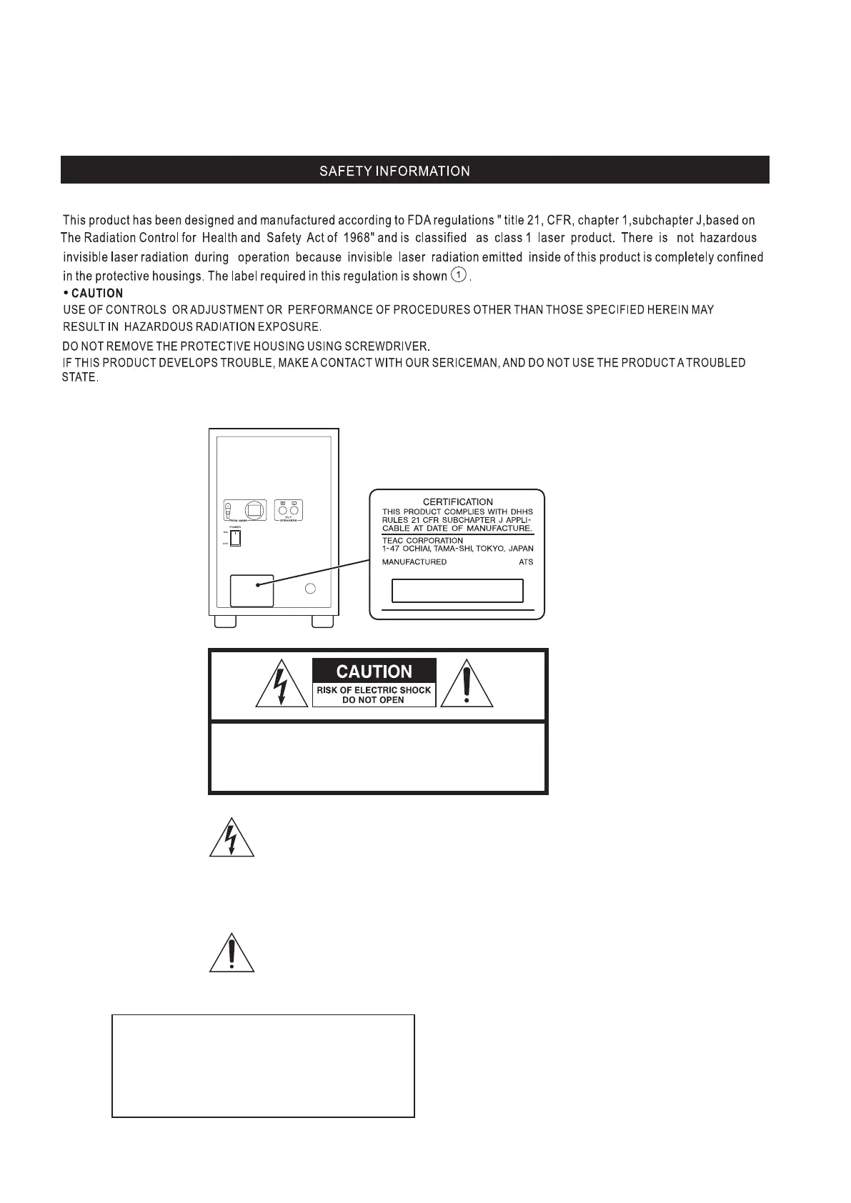 CAUTION: TO REDUCE THE RISK OF ELECTRIC SHOCK,