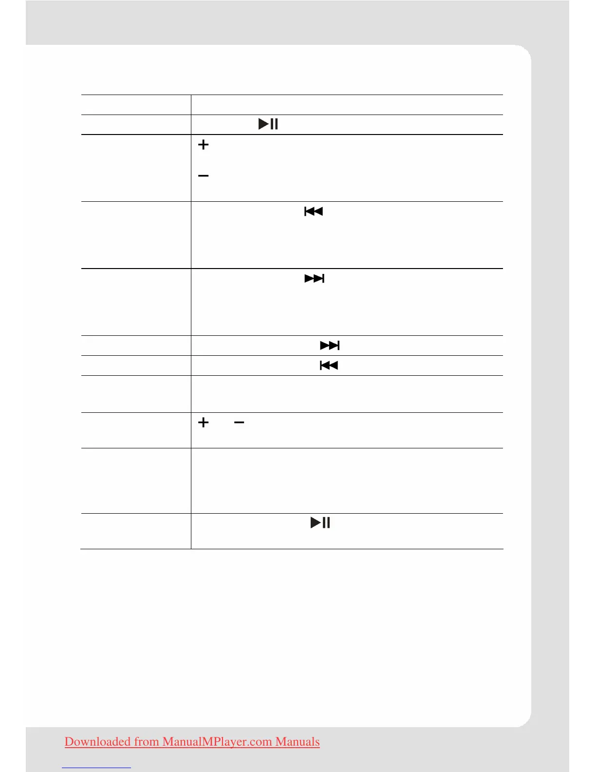 Play/Pause Press the button to play or pause.