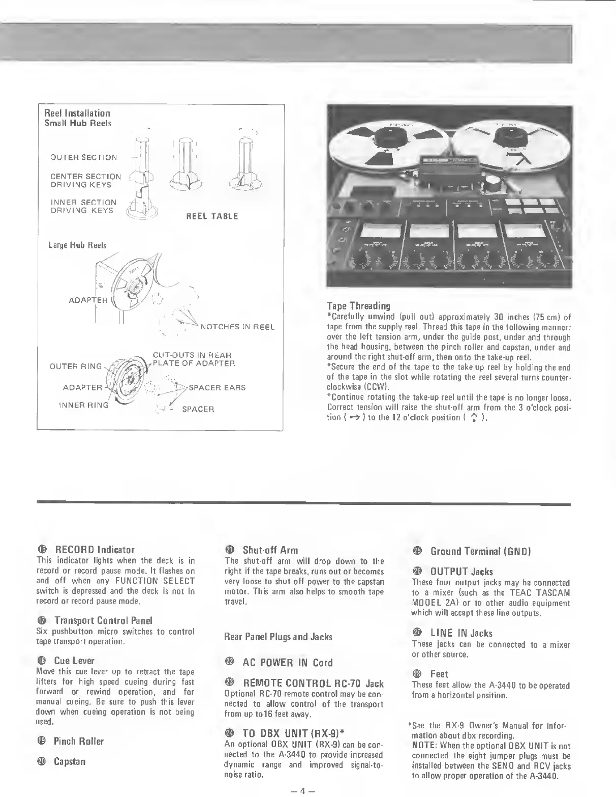 Teac Multitrack Series - Rear Panel Plugs and Jacks; Reel Installation; Tape Threading