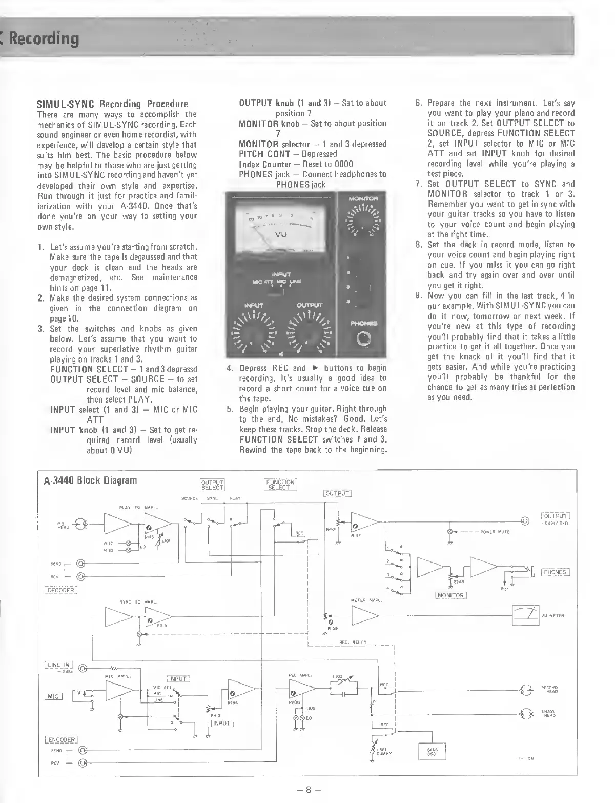 Teac Multitrack Series - SIMUL-SYNC Recording Procedure