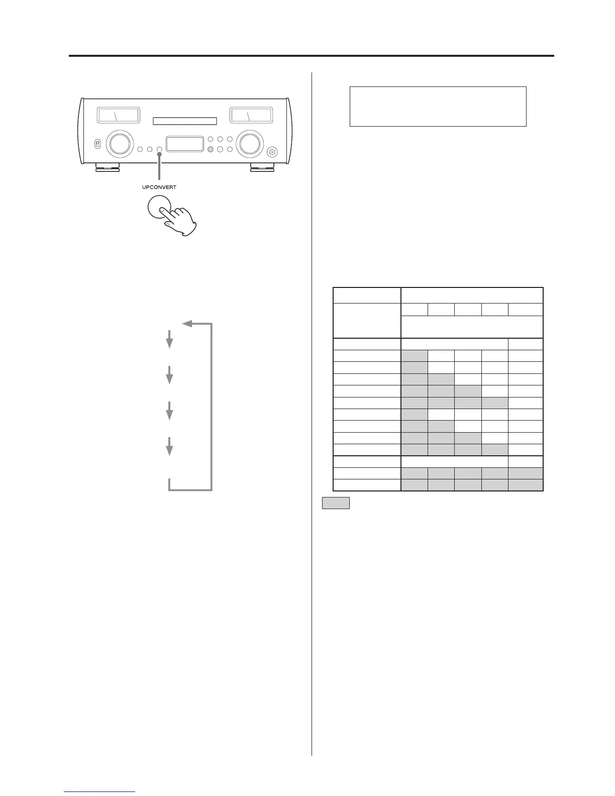 Appuyez sur la touche UPCONVERT pour afficher le réglage actuel.