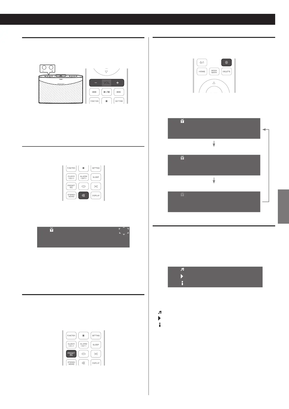 Chaque fois que vous appuyez sur la touche PRESET EQ, l'unité o