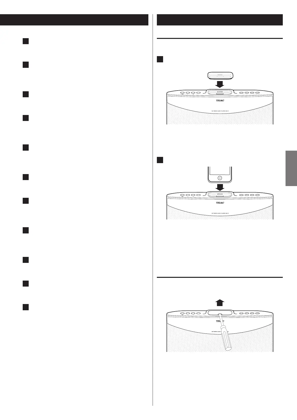 Attach the dock adapter (supplied with the iPod/iPhone)
