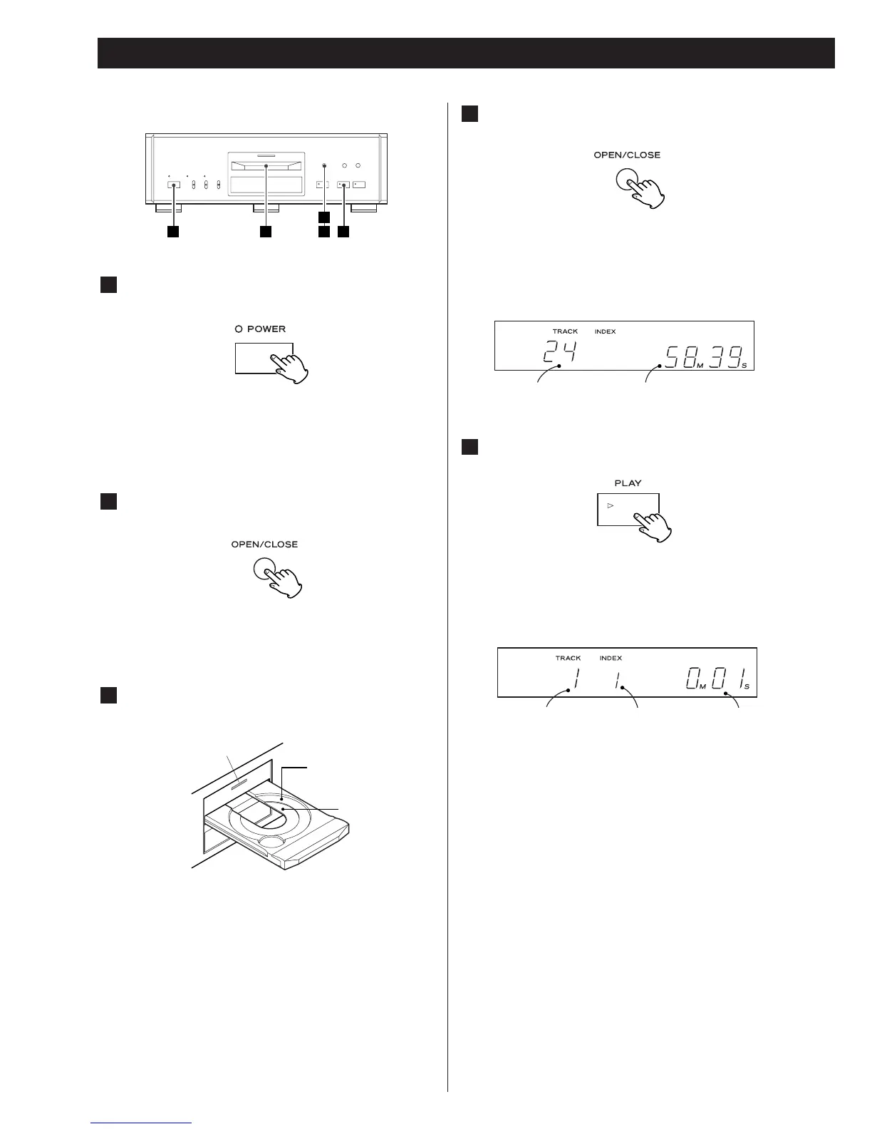 The PLAY indicator lights, playback starts from the first track