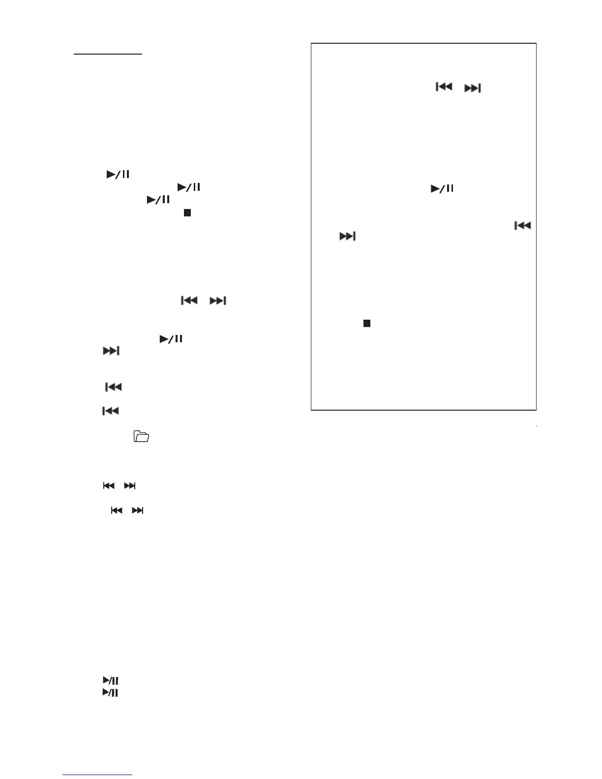 •Press once briefly to return to the beginning of