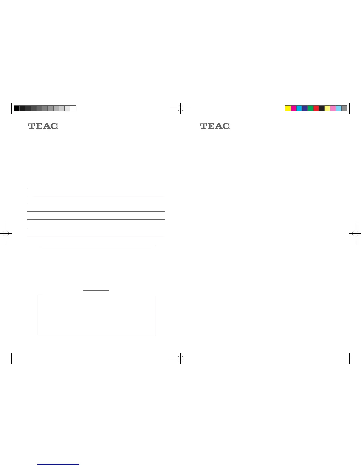 TEAC Warranty Service Hotline
