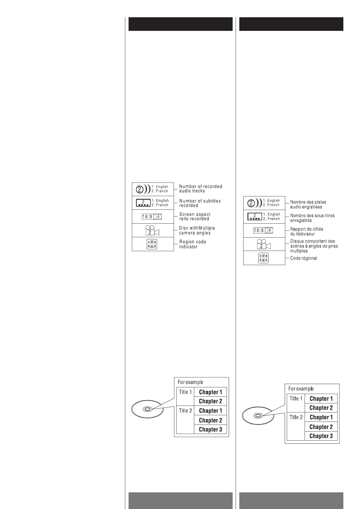 Icones utilisés sur les disques DVD