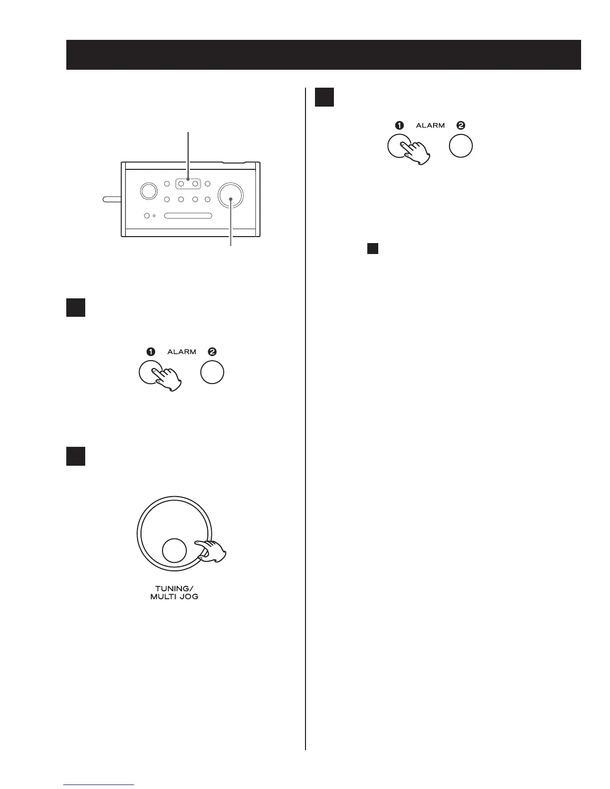 Press and hold the ALARM button (1 or