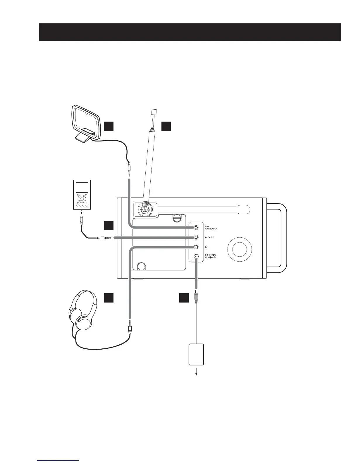 < Assurez-vous que chaque fiche est bien enfoncée. Pour éviter tout ronflement ou bruit parasite,