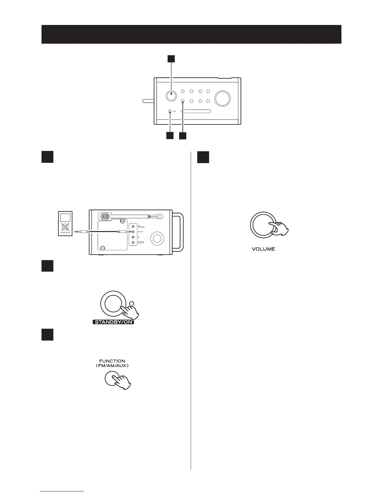 „AUX“ wiederholt die FUNCTION-Taste.