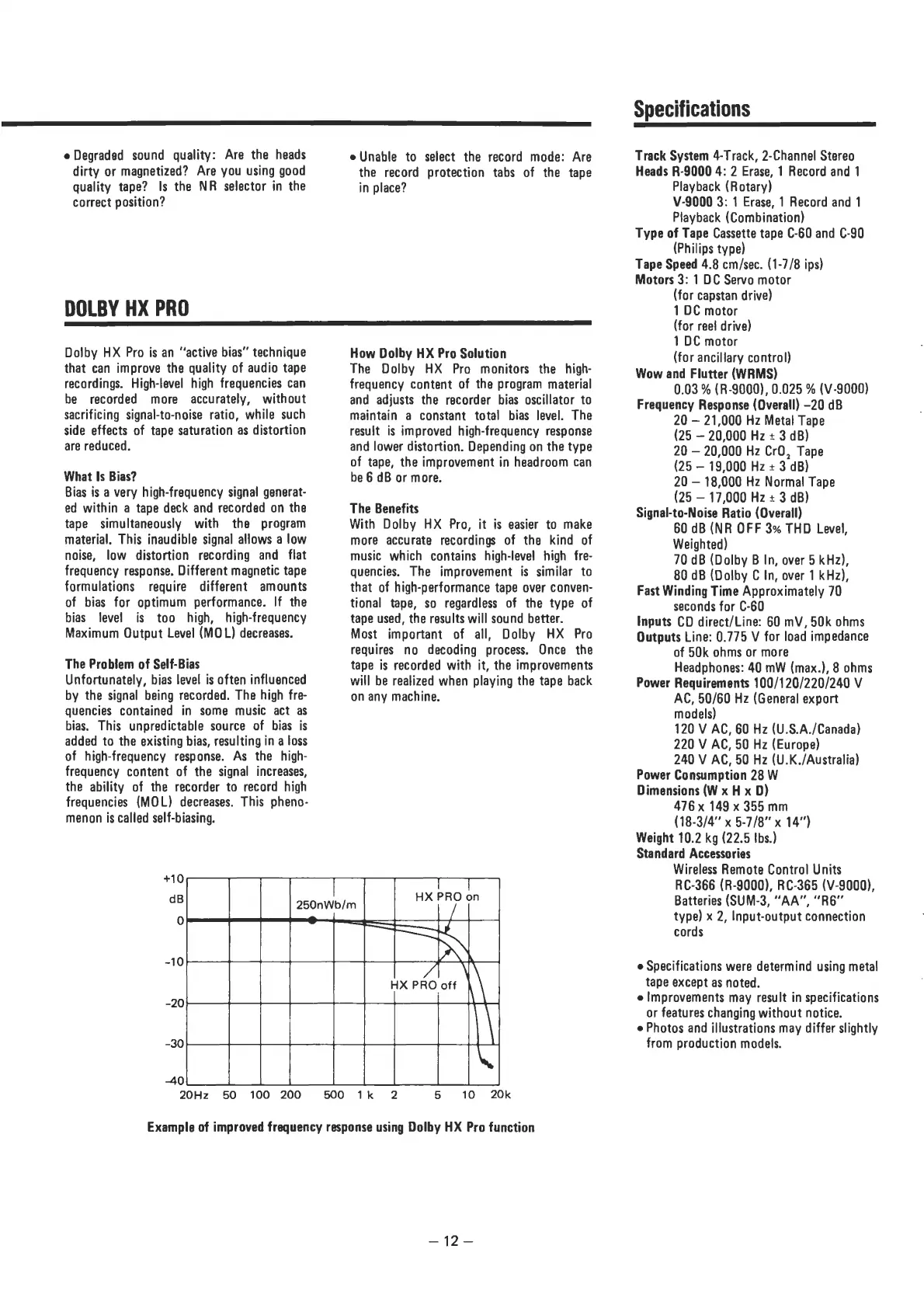 Teac R-9000 - Specifications; Dolby Hx Pro