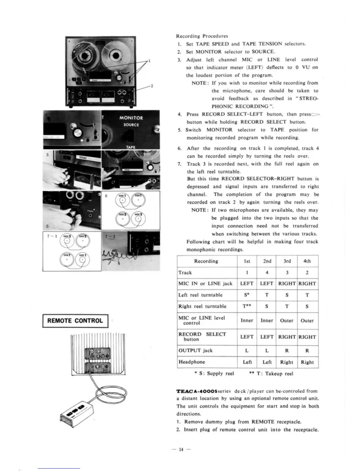 Teac RA-40S - REMOTE CONTROL OPERATION