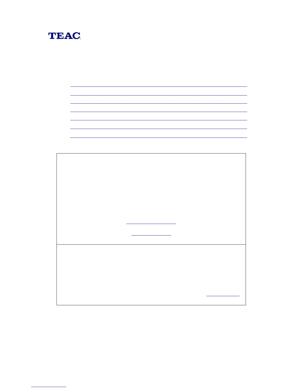 3. If you require Warranty Service, please contact the TEAC Warranty Service Hotline at 1300 553 315 for assistance. Please ensure