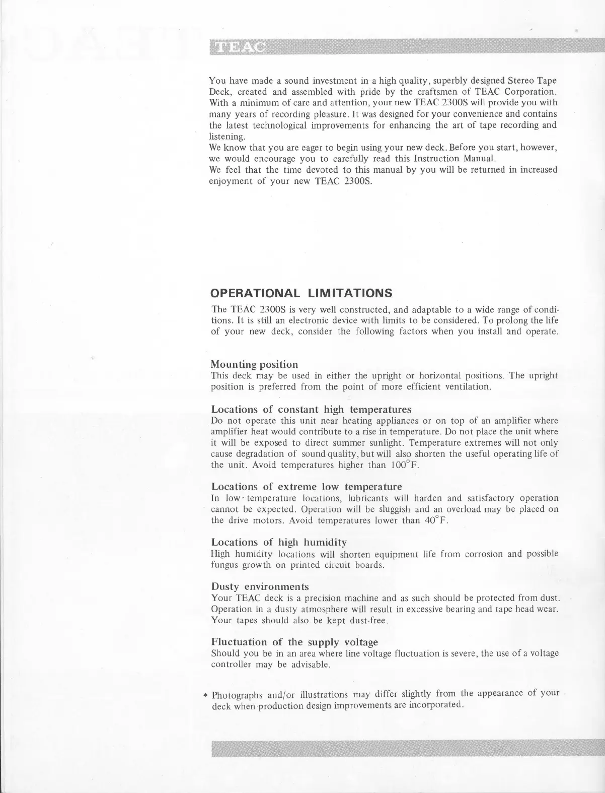 You have made a sound investment in a high quality, superbly designed Stereo Tape