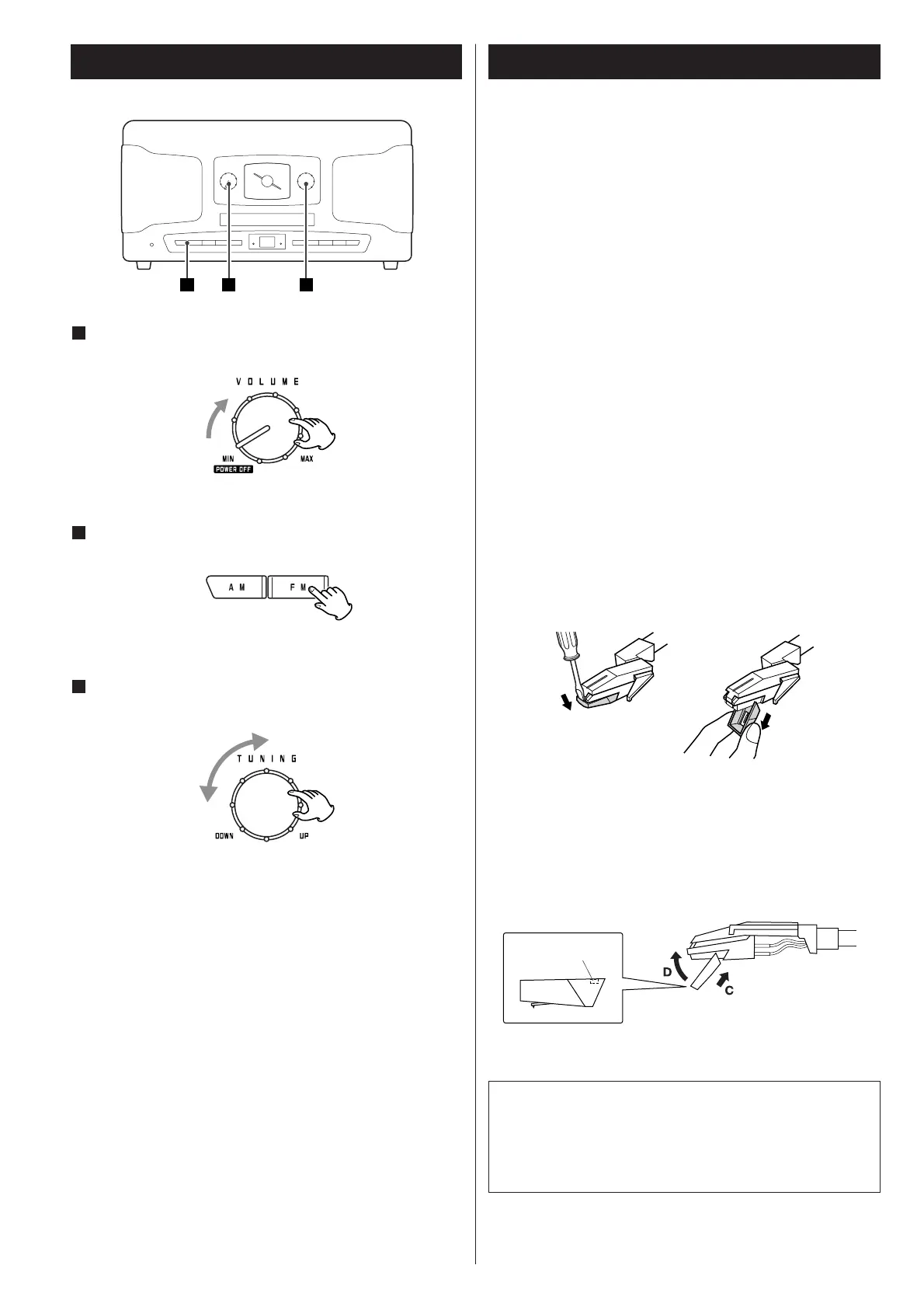 Turn the TUNING knob to tune in a station.