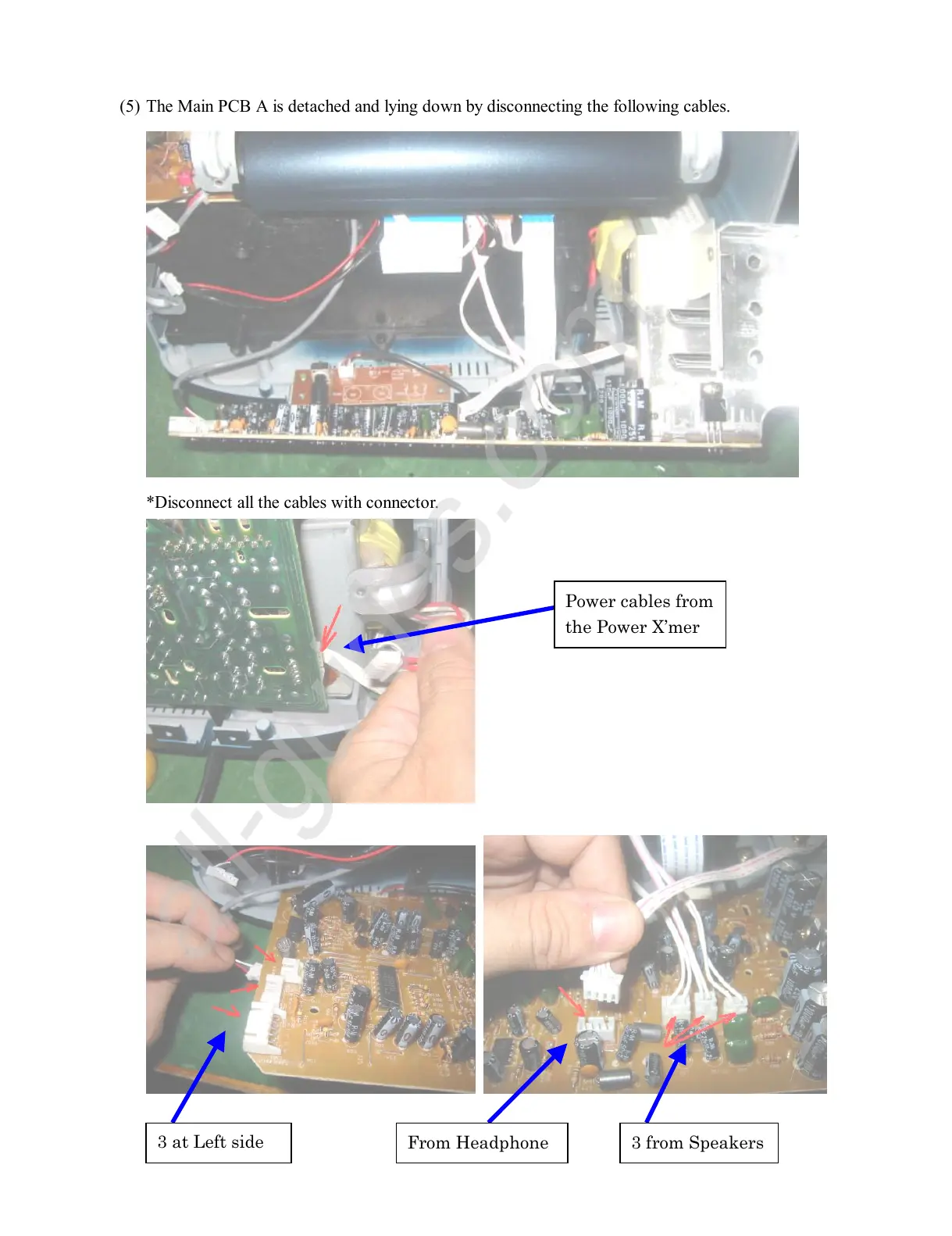 (5) The Main PCB A is detached and lying down by disconnecting the following cables.