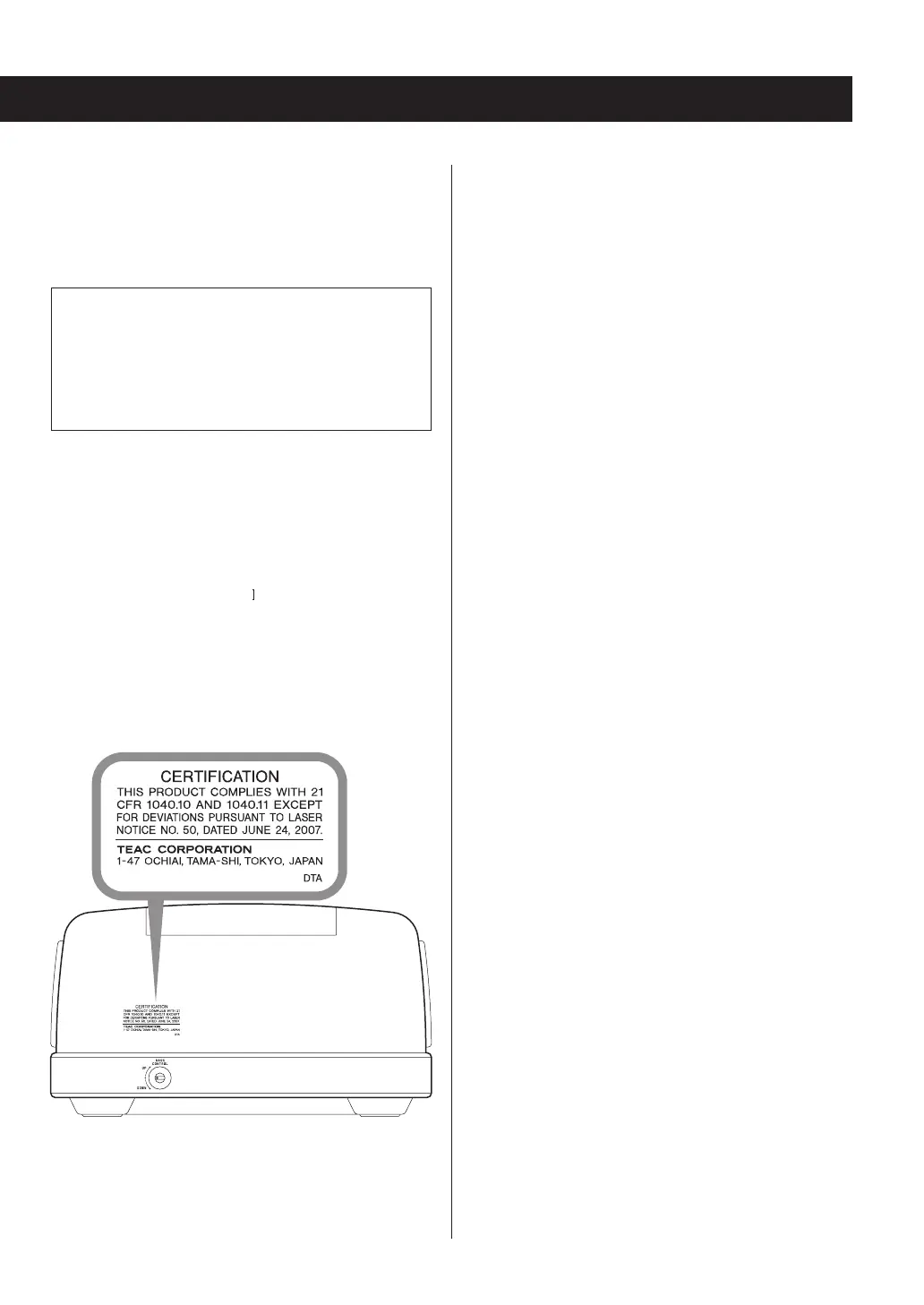 1968”, and is classified as class laser product. There is not