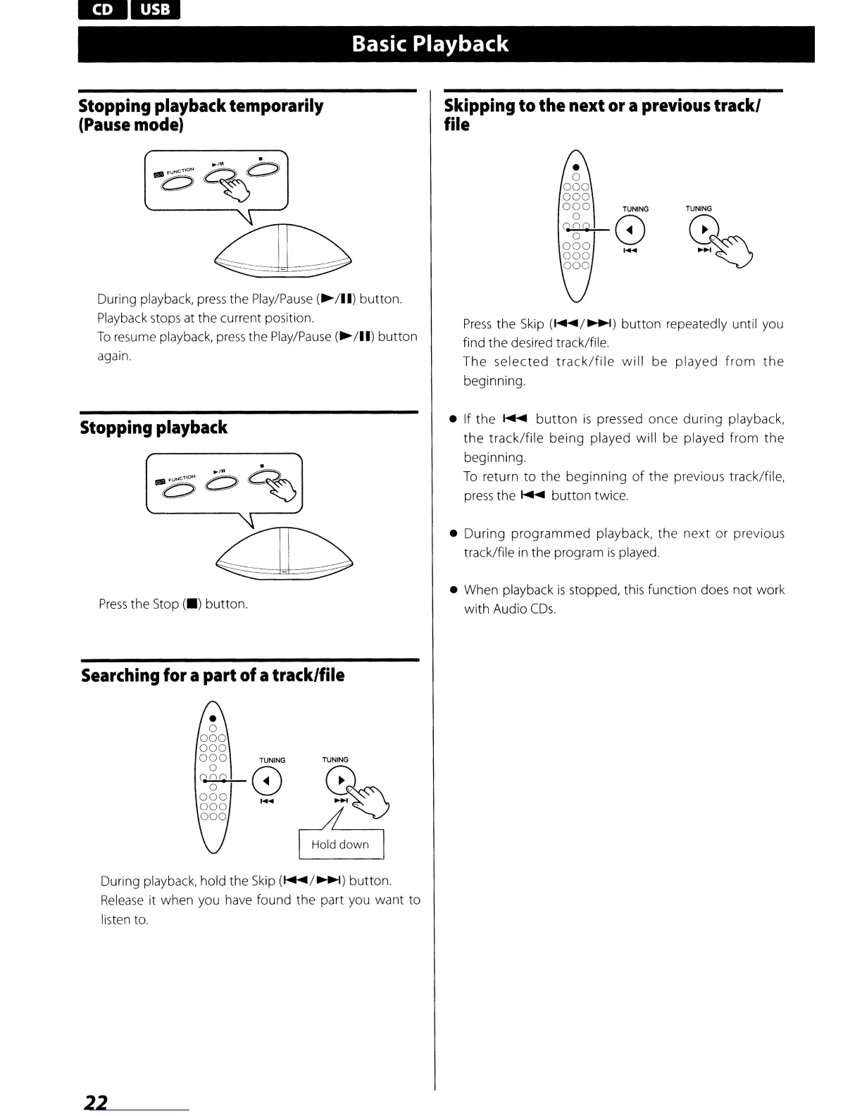 • During programmed playback, the next or previous