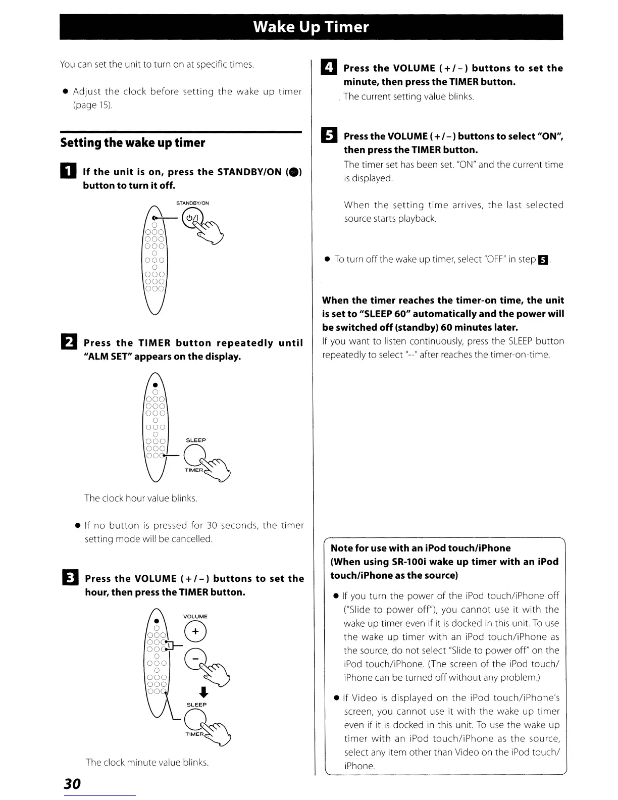 (When using SR-100i wake up timer with an iPod