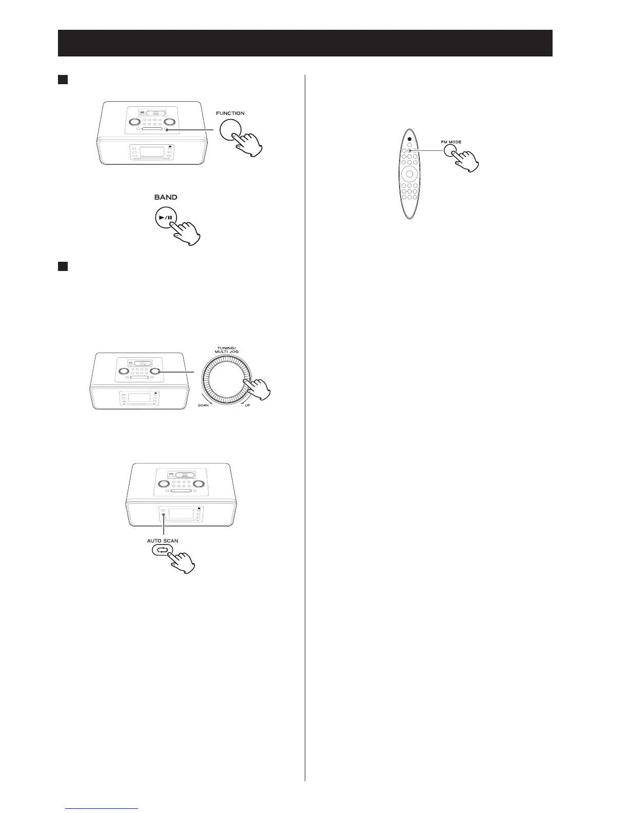 FM MODE button on the remote control unit.