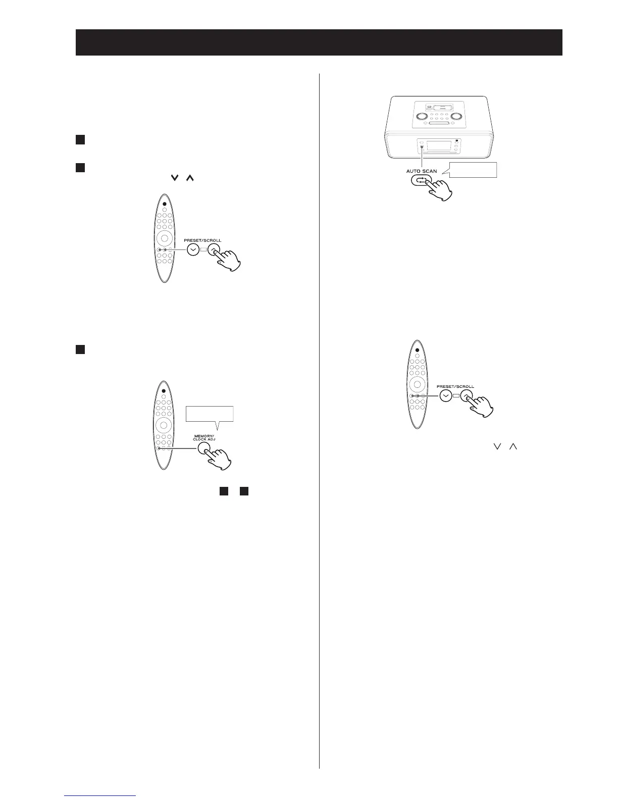 In FM mode, press the PRESET buttons ( / ) repeatedly