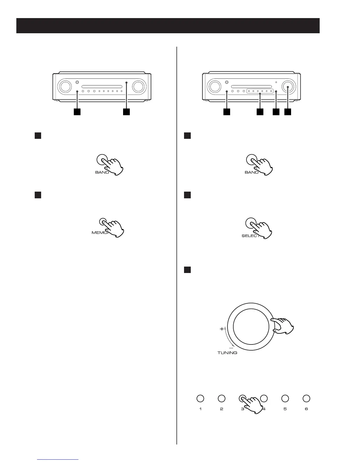 < Preset stations stored from 1 to 6 can also