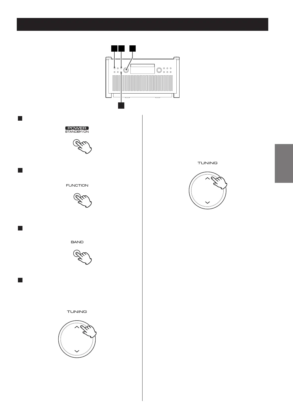 Press the TUNING button up or down repeatedly
