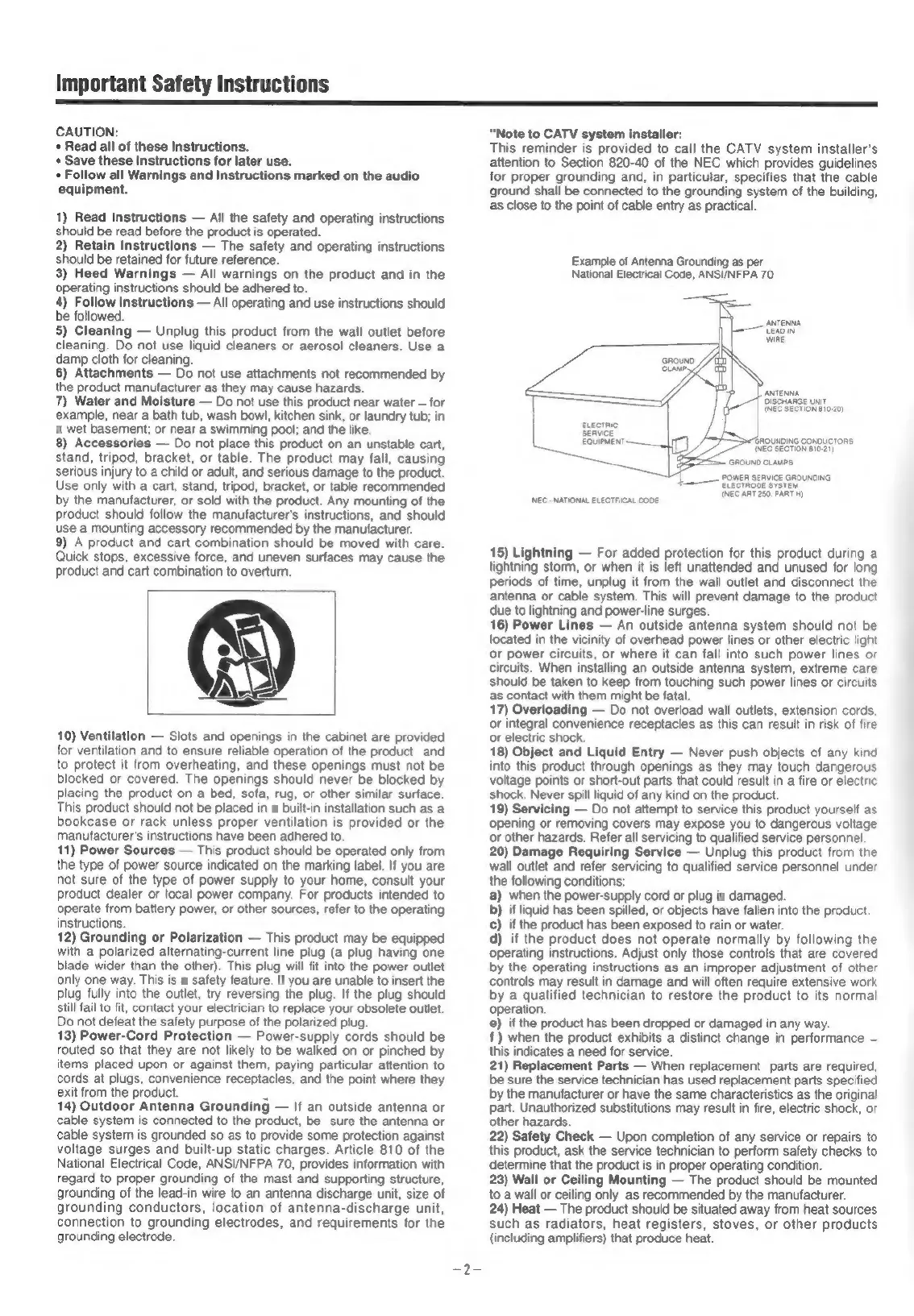 Teac T-H300 - Important Safety Instructions; General Usage and Care Instructions; Electrical and Installation Safety; Hazard Prevention and Servicing