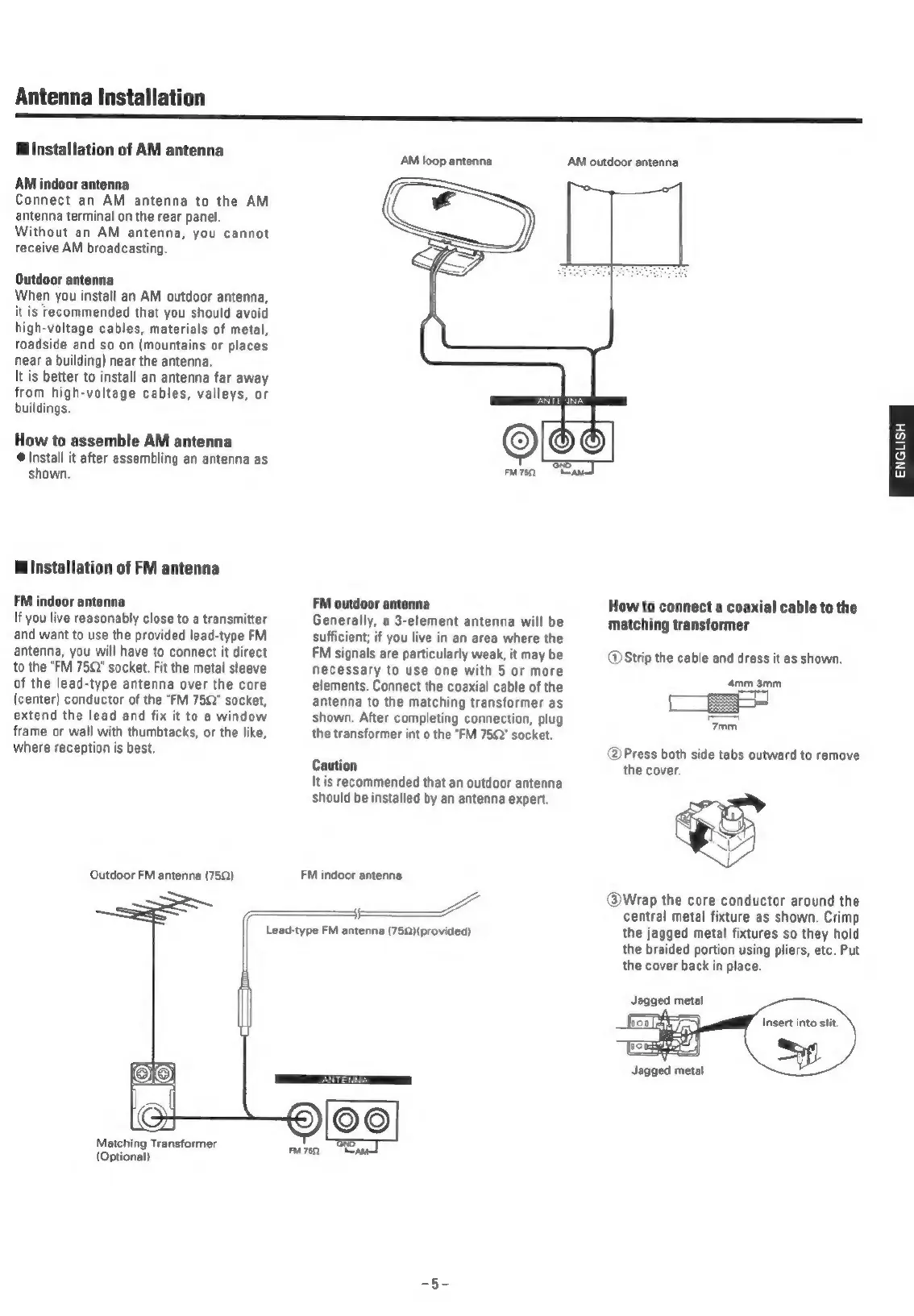 Teac T-H300 - Antenna Installation; AM Antenna Setup; FM Antenna Setup
