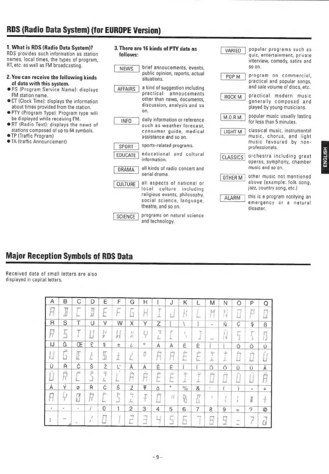 Teac T-H300 - RDS System Overview; RDS Features and Data Types; RDS Reception Symbols