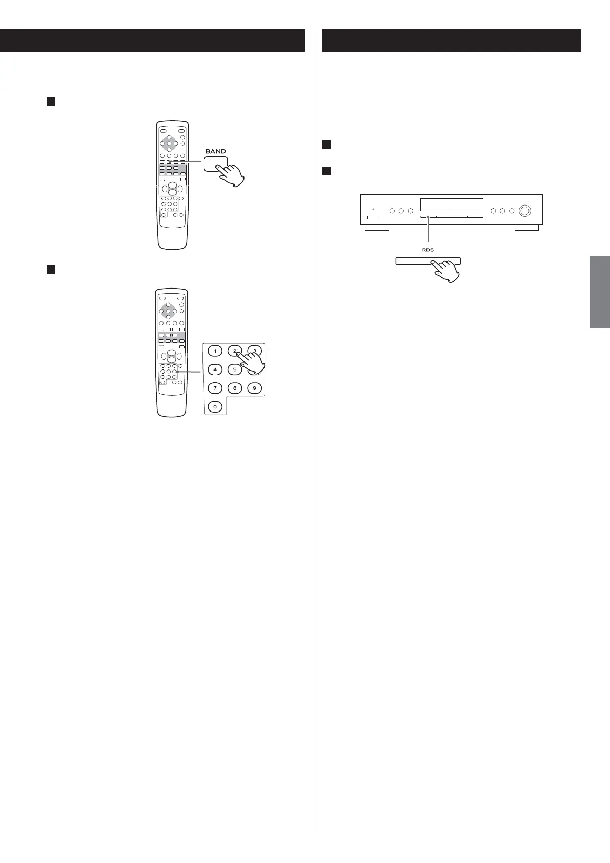 Select AM or FM by pressing the BAND button repeatedly.