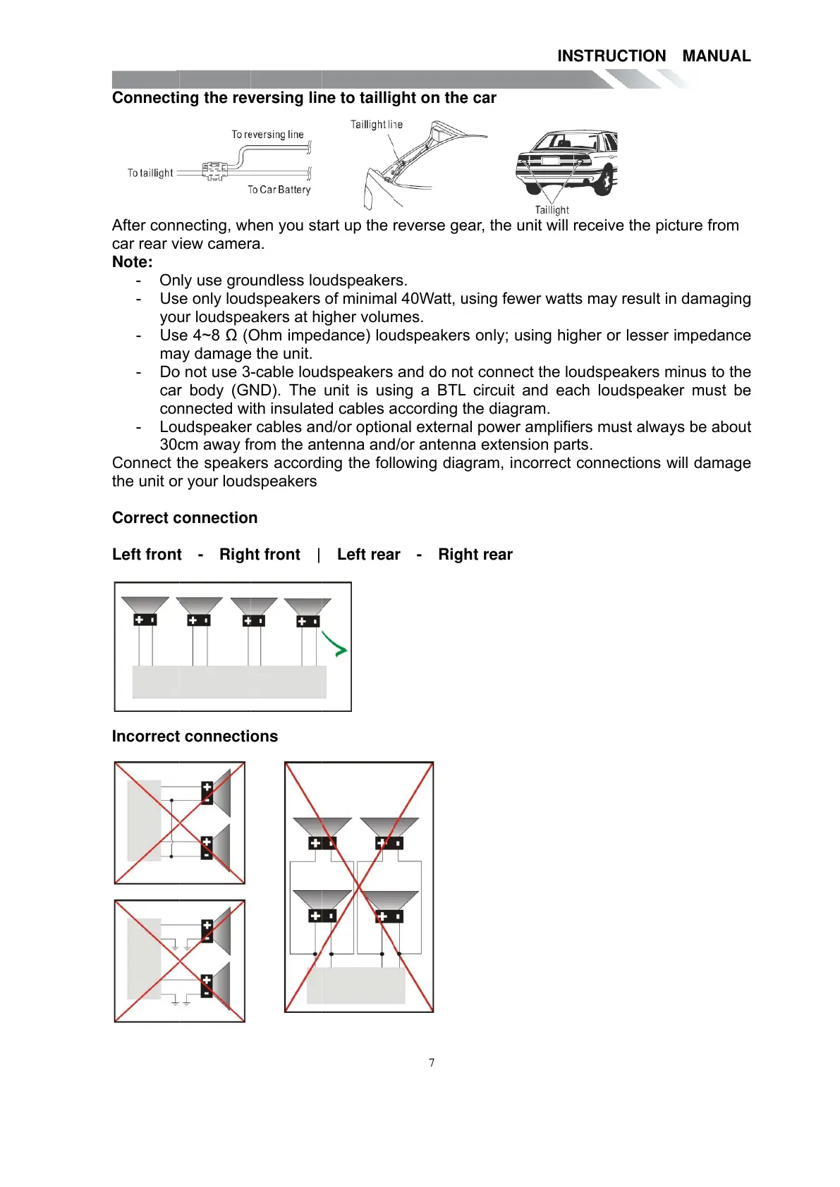Teac TE-268 - Connecting the reversing line to taillight on the car