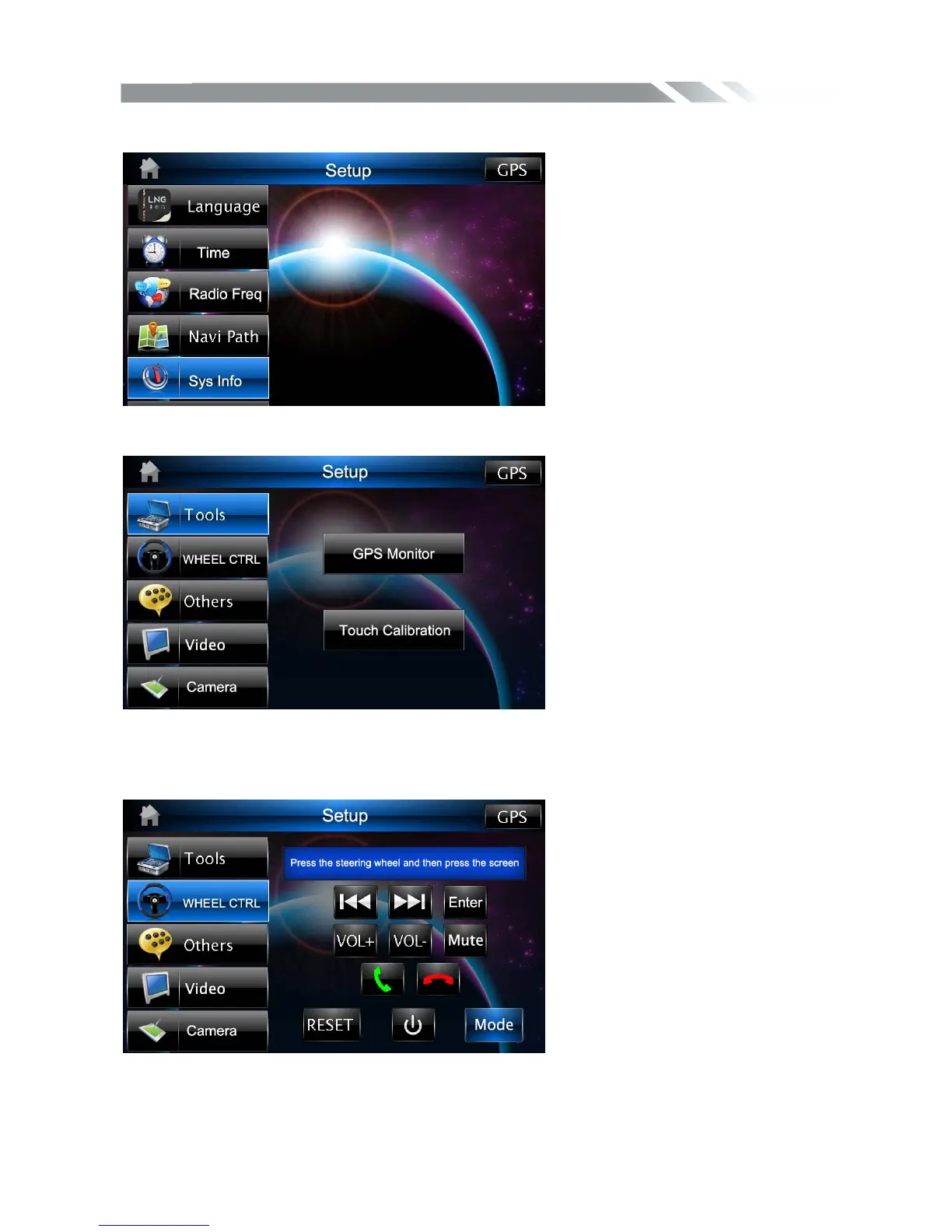 Tap tools icon to select the GPS monitor and touch calibration function