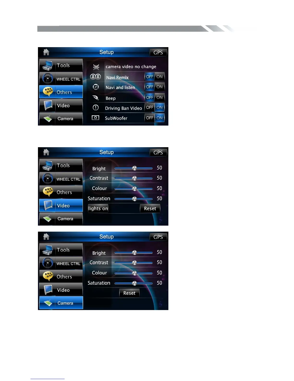Tap other icon to show the menu to set the other function