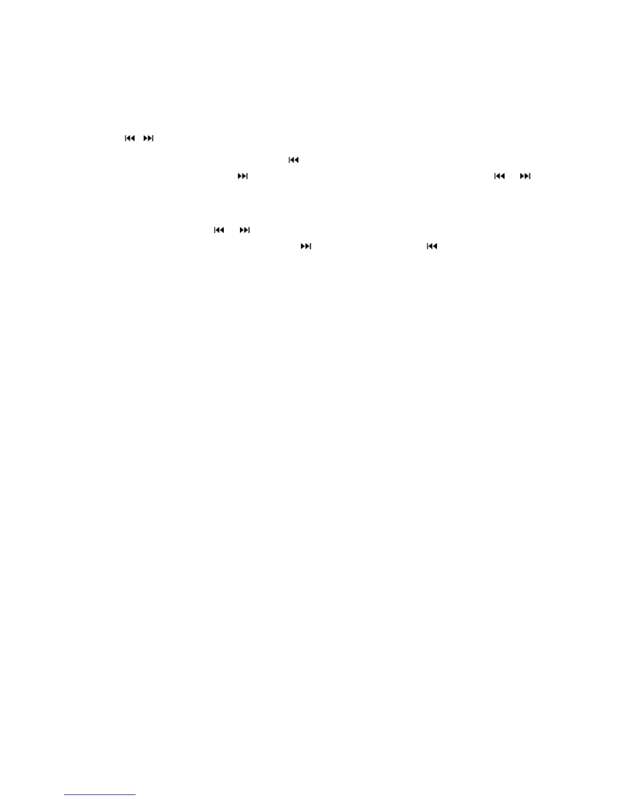 to the previous track. Press button to skip to the next track. Press and hold or