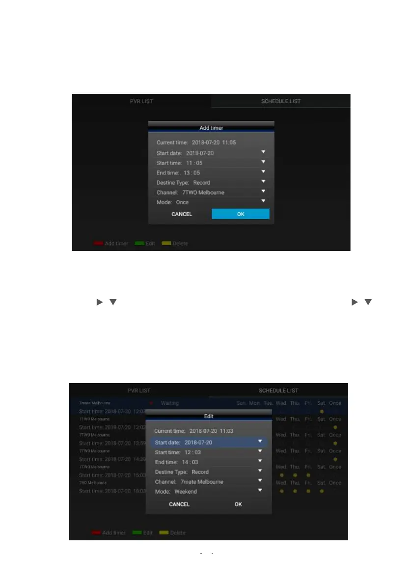 2. The "Add timer" menu will now display. Customise each detail by highlighting them