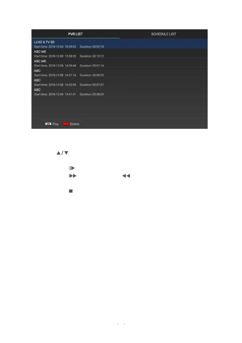 Quickly access your recorded TV programs with this list. Press the PVR LIST