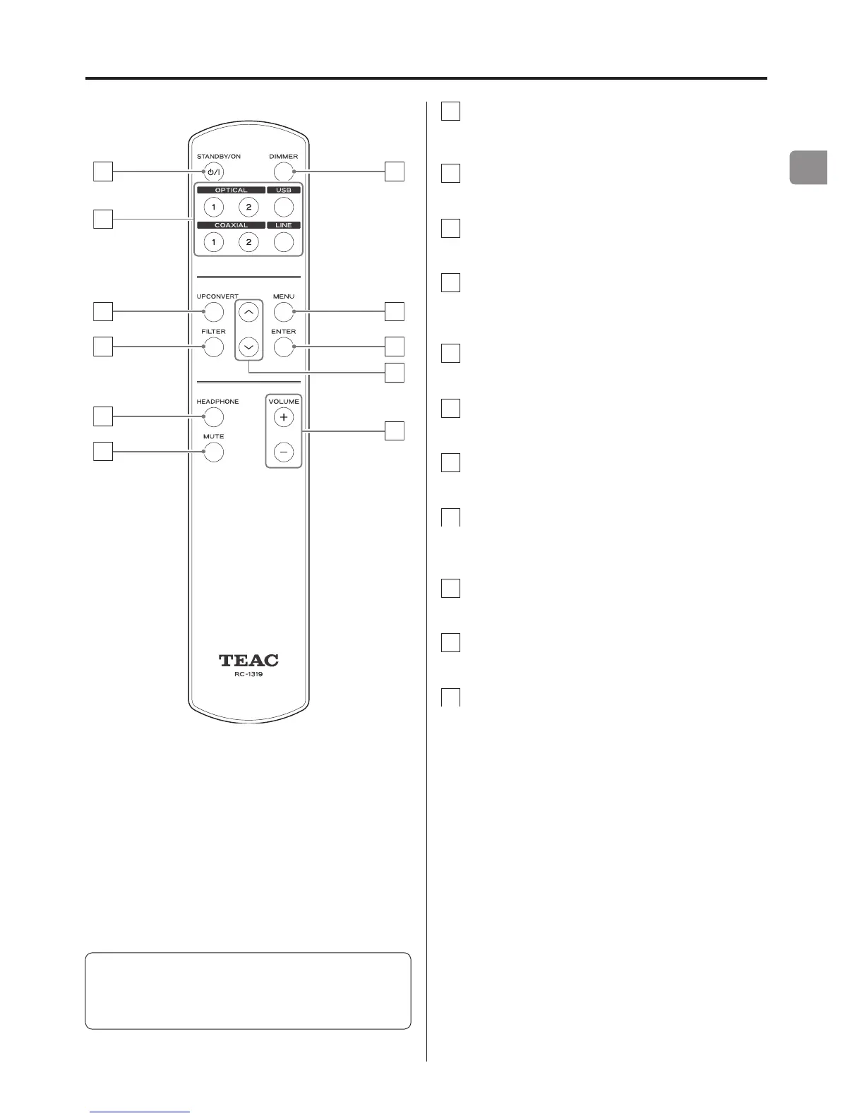 Names and functions of parts (remote control)