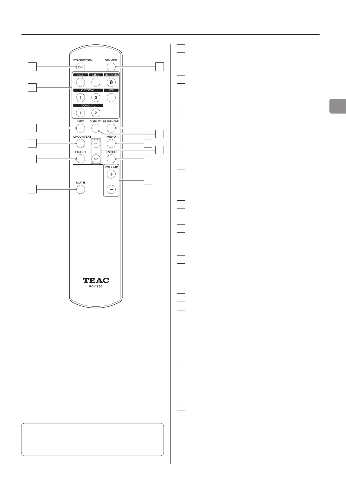 Nomenclature et fonctions des parties (télécommande)
